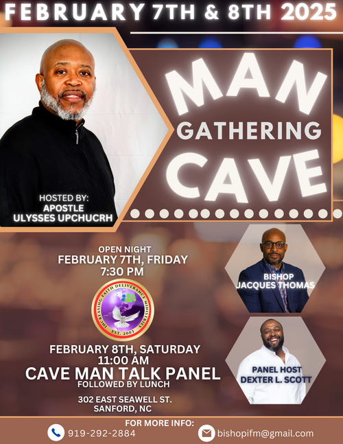 Our Men's ministry is usually off location at 9:30 AM on Sunday Mornings. Locations are always announced in advance. Join us for our annual Men's Gathering in February, Men's Day in June, and periodic Men's fellowship TBA.